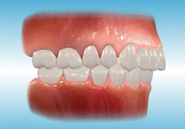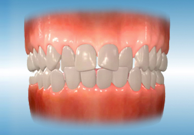 A posterior crossbite will usually result from a narrow upper jaw or abnormally wide lower jaw. A narrow upper jaw will often force a patient to move the lower jaw forward or to the side when closing into a stable bite. When closed into this accommodating position, the lower teeth are located outside the upper teeth.